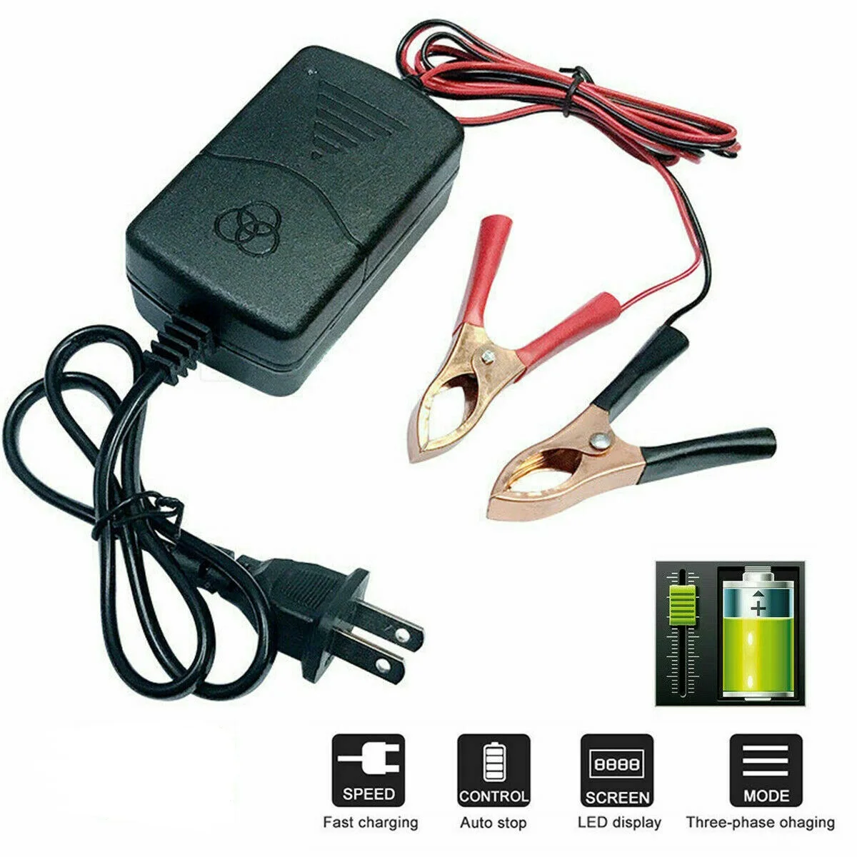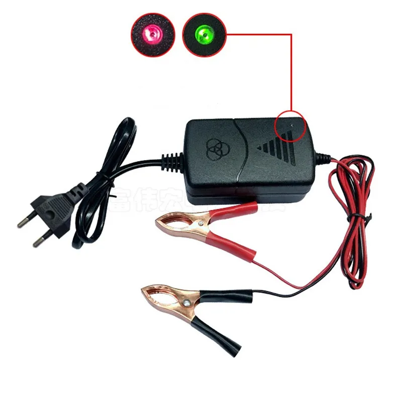 Smart 12V Car Battery Charger 1A Lead-Acid With Indicator Light 14.4 Volt Dual Wire Alligator Clip Camping Auto Charging Socket