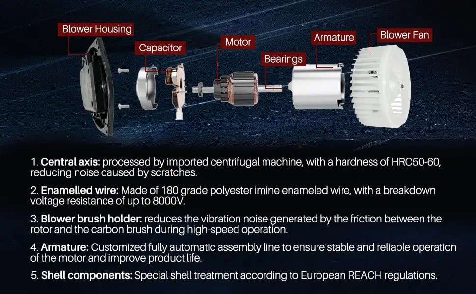 1.This blower is made of high-quality ABS material and metal, making it more durable and durable.