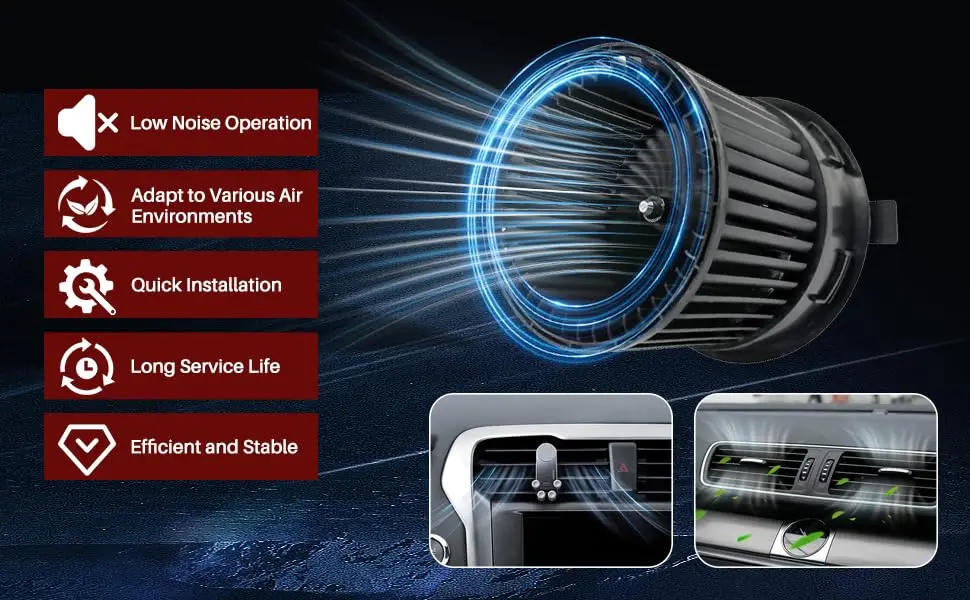 2.This blower has a fast speed and can quickly blow the cold air above the air conditioning evaporator or the hot air from the warm water tank into the car. It is suitable for the ventilation and heating systems of car air conditioners.