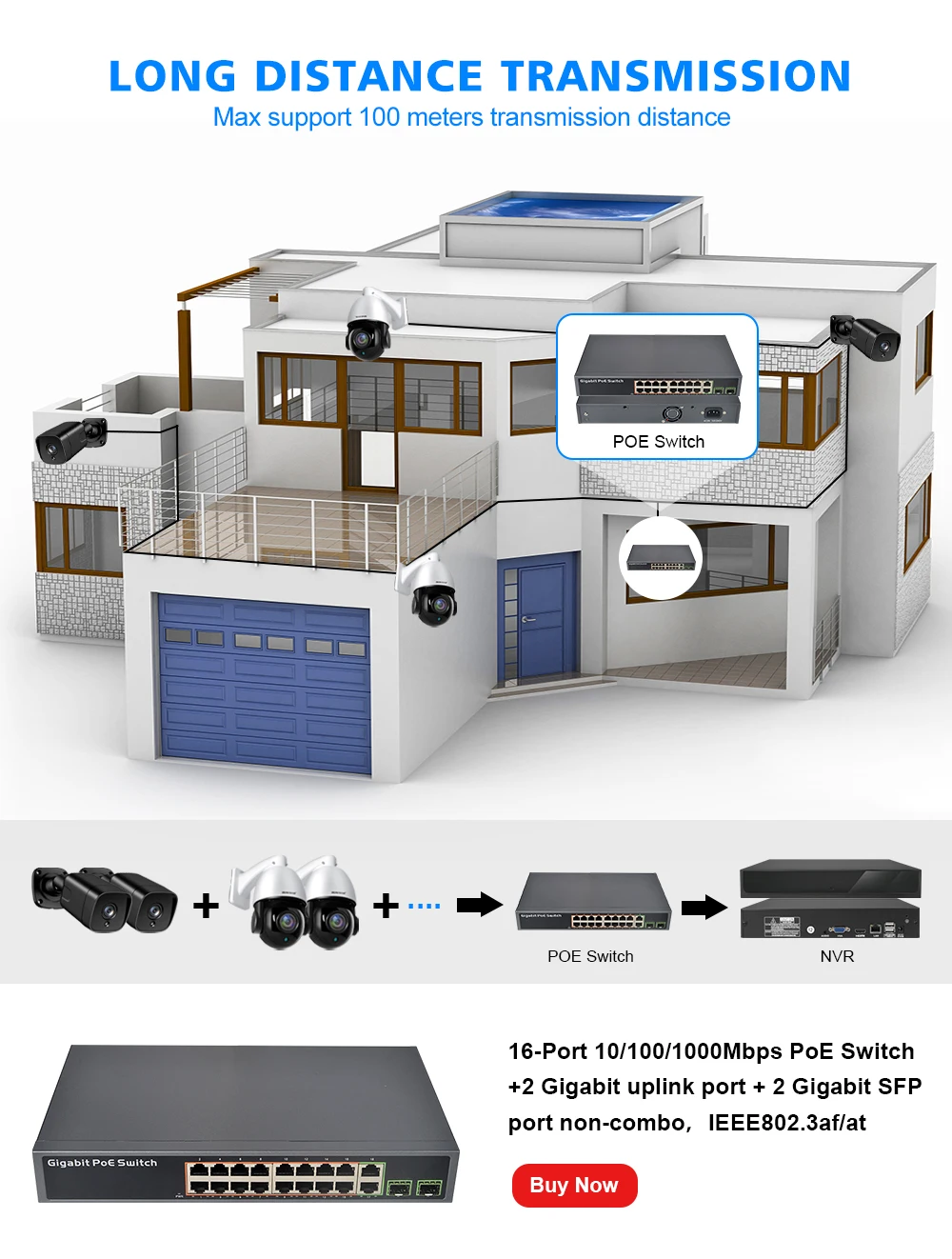 we advise to purchase this POE switch together which is 16-Port 10/100/1000Mbps +2 Gigabit uplink port + 2 Gigabit SFP port , IEEE802.3af/at , help your camera system work more stable .