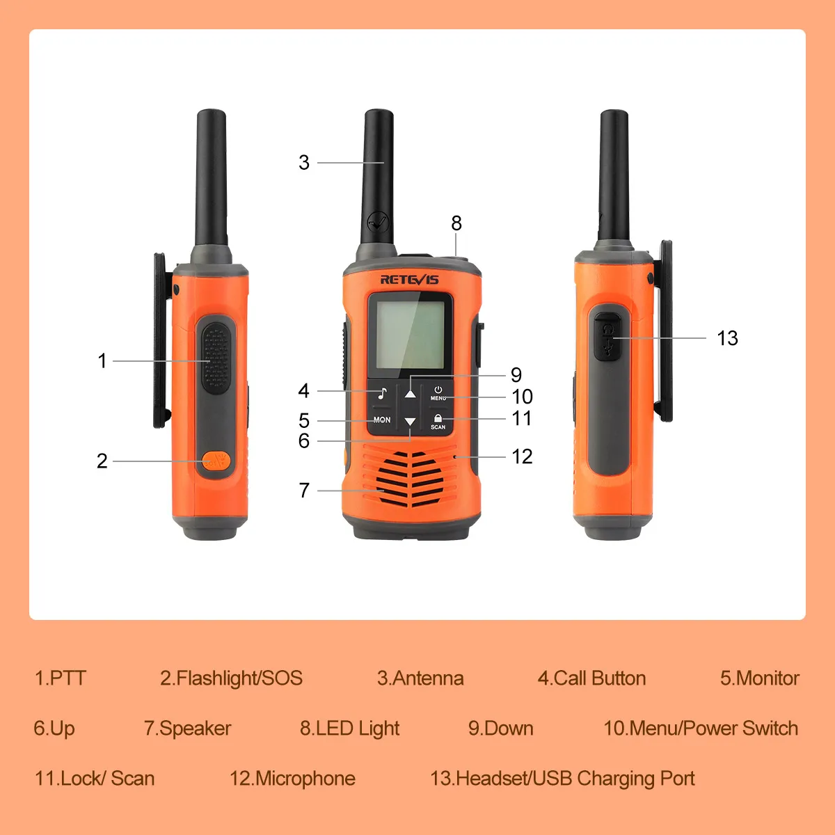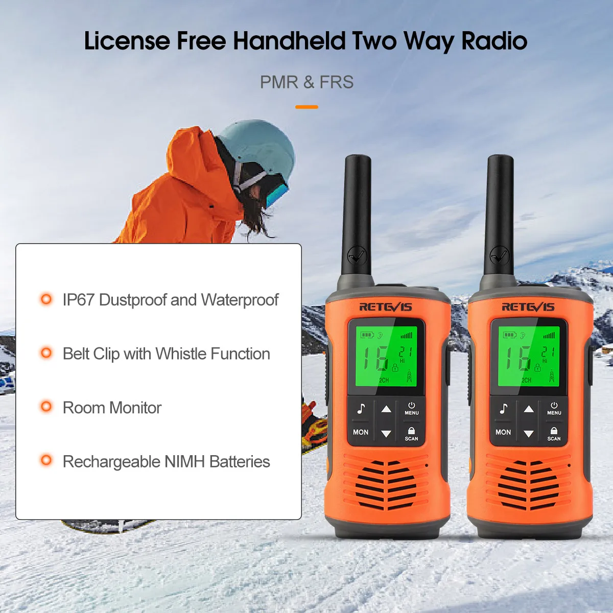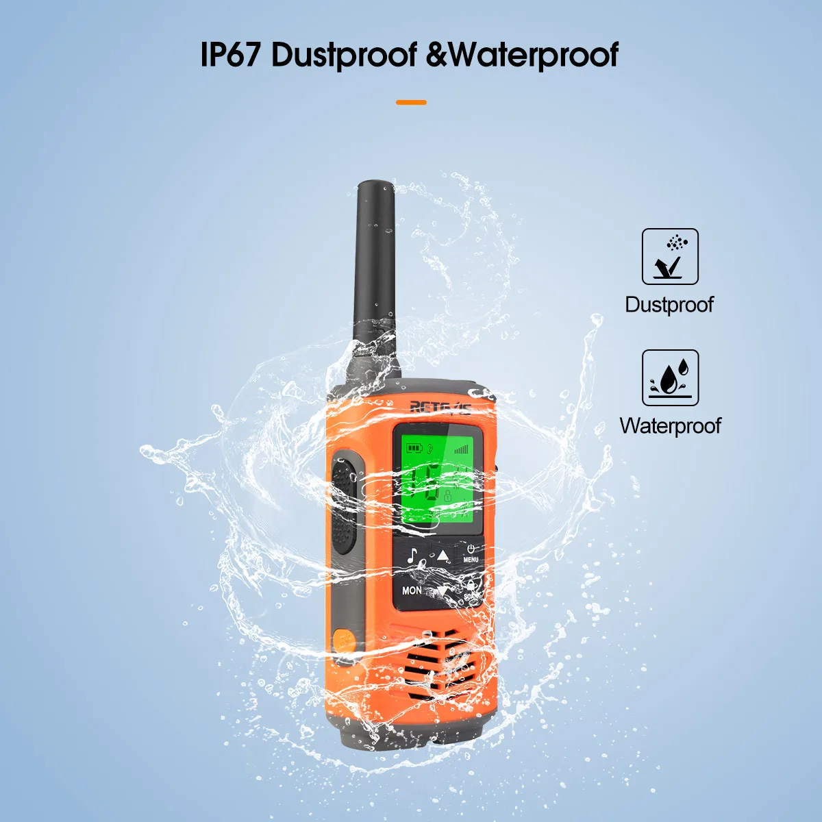 Retevis RT649P Waterproof Walkie Talkies Floating NOAA 1200mAh Rechargeable SOS Flashlight for Emergency Camping Kayaking (2Pcs)