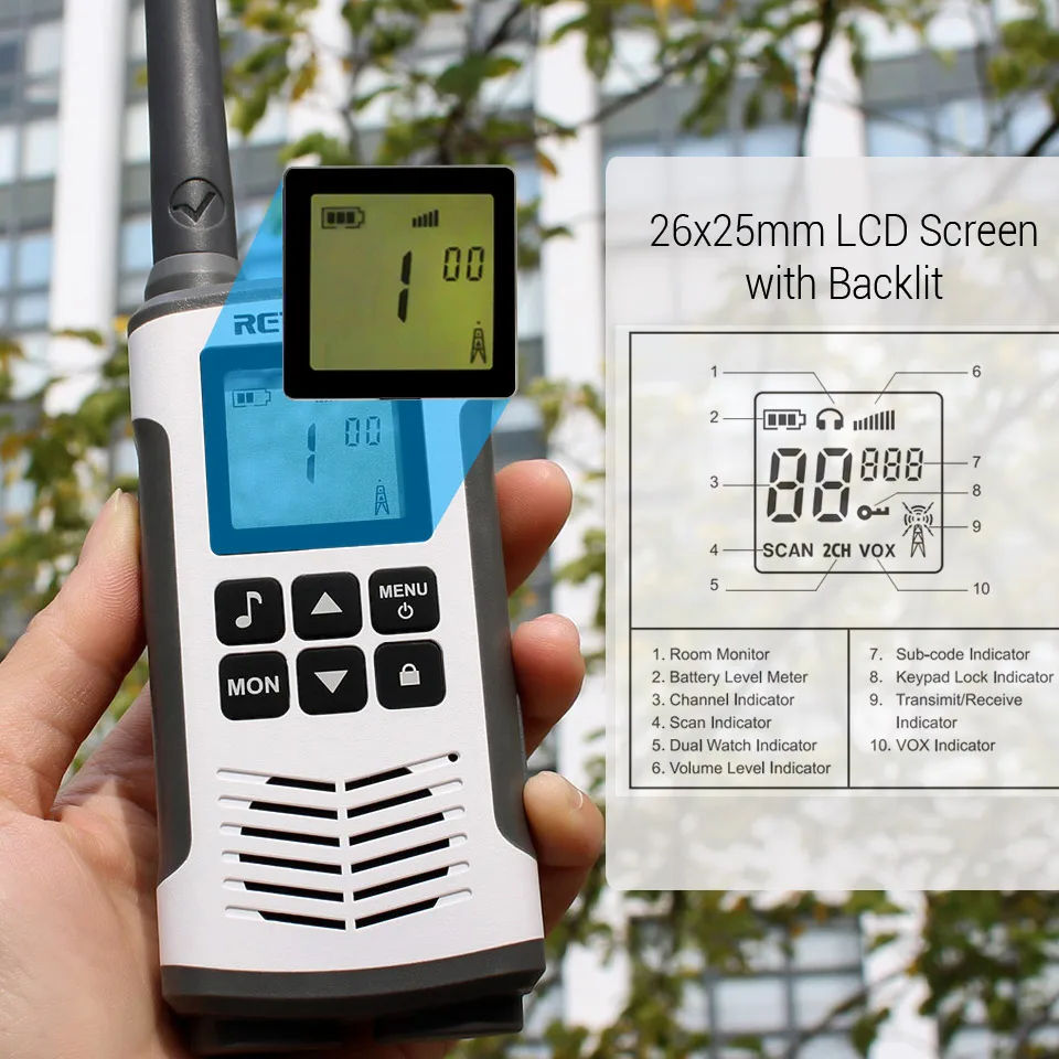 2Pcs Rt-388 Kids Walkie Talkies 0.5W LCD Display Portable Child Electronic Radio Voice Interphone Outdoor Toy Christmas Gift